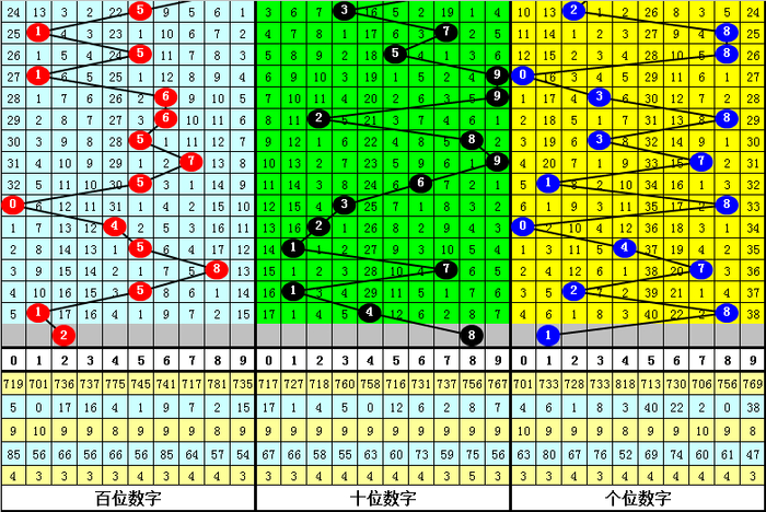 二、在最近22期开奖中,奖号:8、5、1、3,开出期数最多,本期注意这四码中落号,关注号码8;遗漏期数最多的三码奖号为:9、6、3,当期开奖一般不会全部出现冷码。