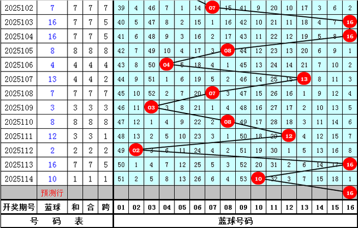 在历史同期第115期开奖中:蓝球号码012路比为8:5:8,本期蓝球参考1路号码,独蓝看好16。