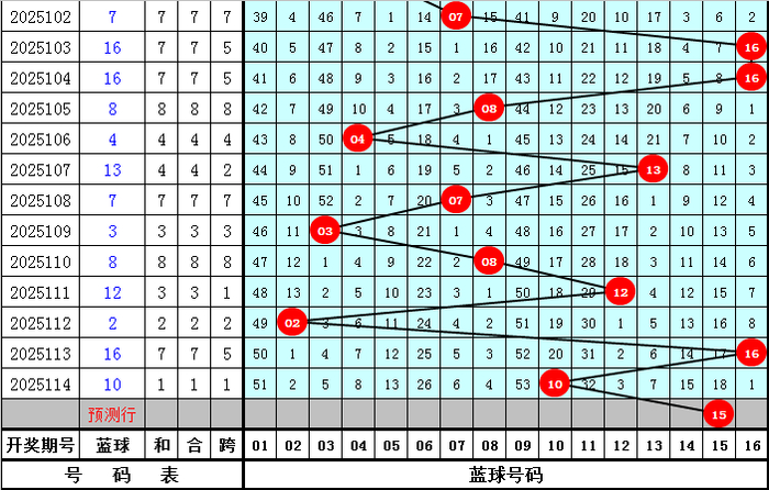 蓝球分析:上期蓝球为大号10,最近10期小 号蓝球开出6次,大号蓝球开出4次,大号蓝球走势较冷,本期注意回补,关注蓝球15。
